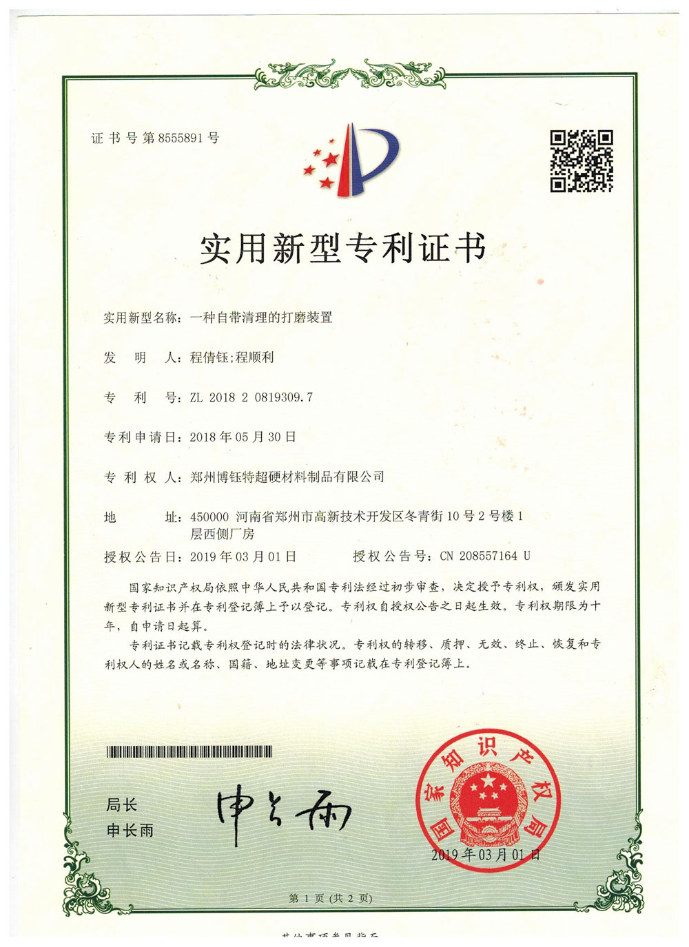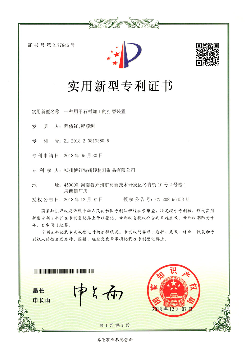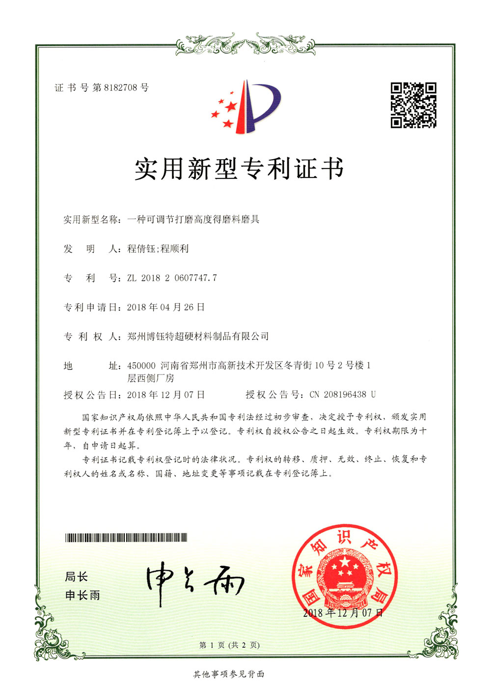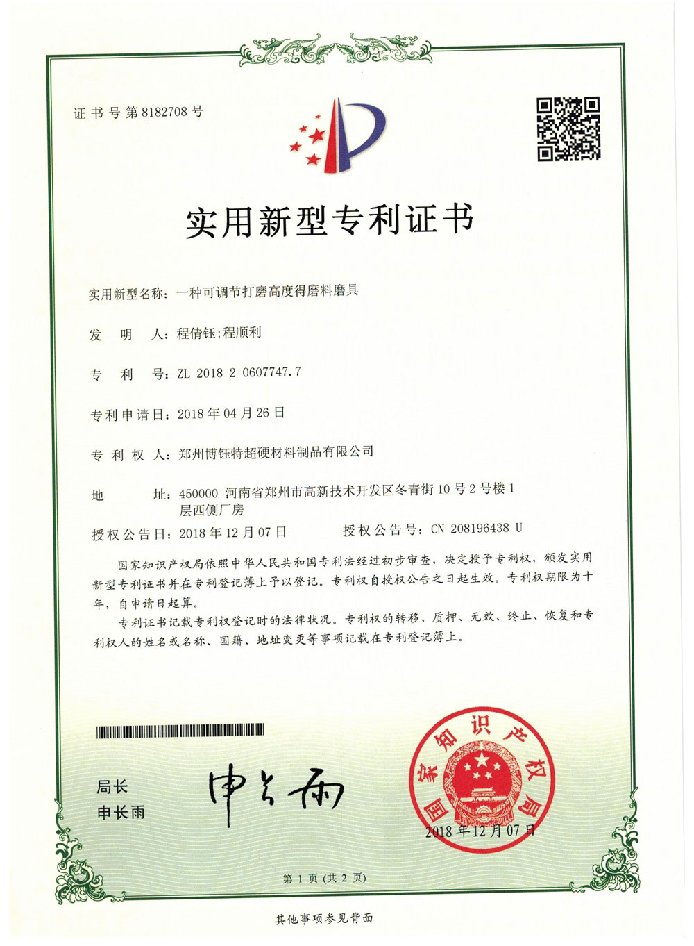 博爾德集團(tuán)旗下專利證書展示